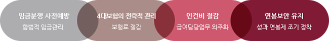 | - 합법적 임금관리 | 전문가의 급여설계 및 관리로 적법한 임금관리가 가능합니다. |